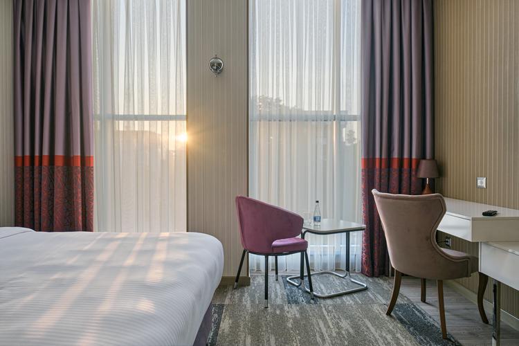 Расположение Hyatt Regency Ташкент удобно как для деловых путешественников, так и для отдыхающих. Почувствуйте себя как дома в просторном номере, поужинайте в одном из четырех ресторанов и баров, проведите заседание совета директоров или эксклюзивное мероприятие и не забудьте расслабиться в нашем бассейне и спа-зоне. Здесь вы сможете плодотворно работать и отлично отдыхать во время своего пребывания в Ташкенте. В каждом номере есть просторное рабочее место с эргономичным креслом и зарядным устройством, а в ванной комнате к вашим услугам душевая кабина с успокаивающим тропическим душем и отдельная ванна. Гостям номеров и люксов Regency Club предоставляется доступ в клубный лаундж Regency Club на 6 этаже, где подают бесплатный континентальный завтрак/