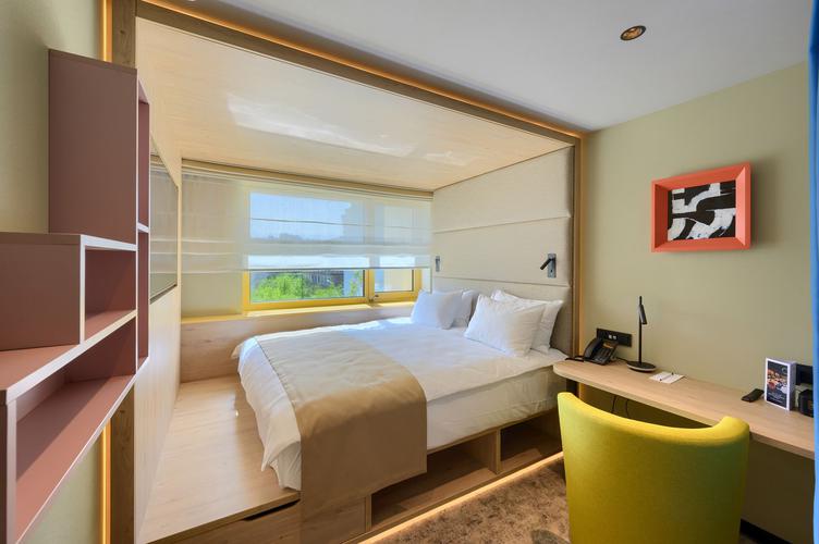 Дополнительно к вашим услугам: фен, настольные лампы, багажная полка, зеркало, тумбы, письменный стол, шкаф для одежды с вешалками, мини‑бар и сейф.